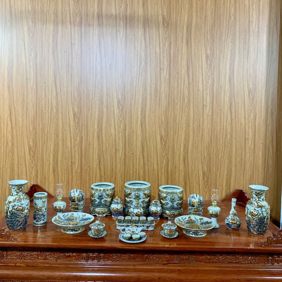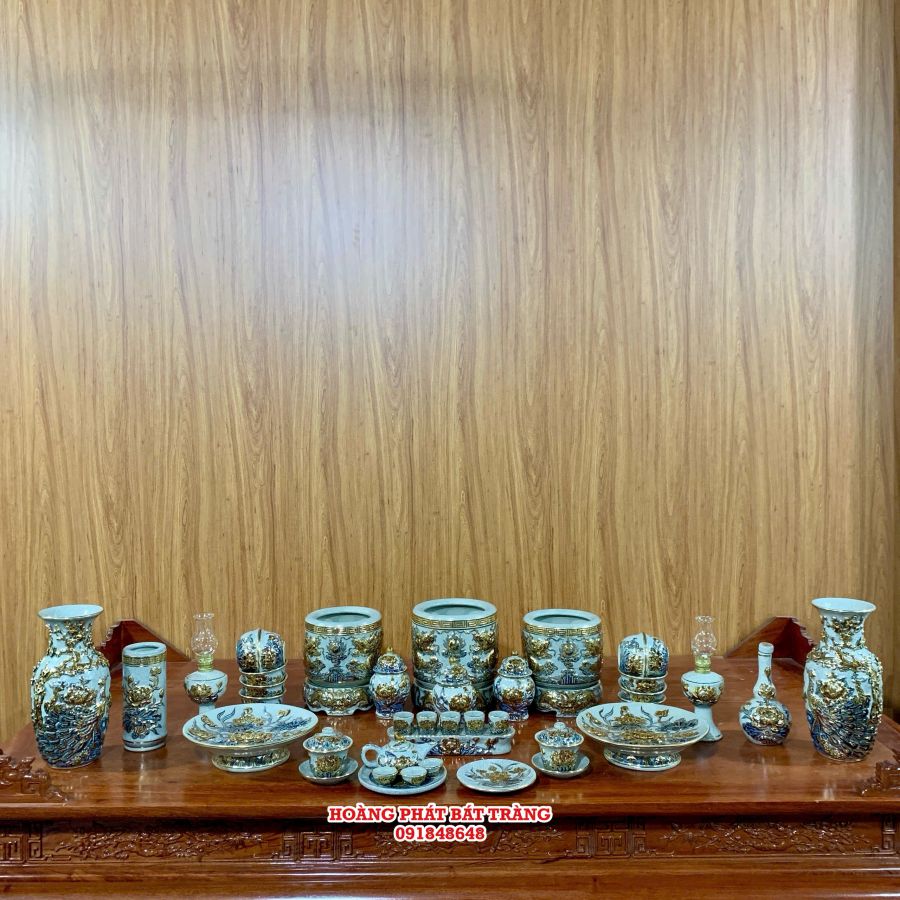 Bộ đồ thờ dát vàng Bát Tràng