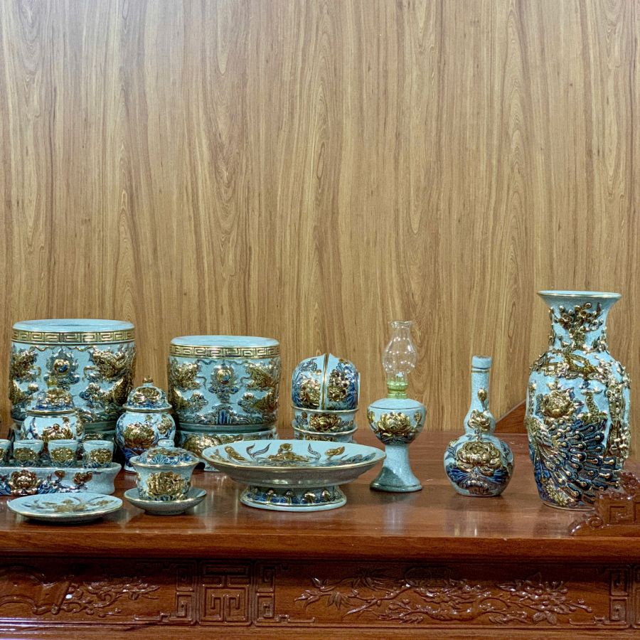 Bộ đồ thờ men rạn Rồng nổi