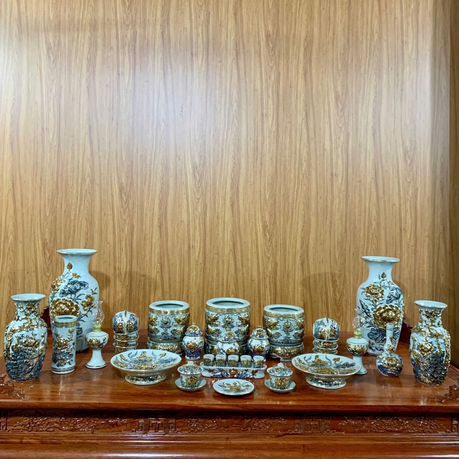 Bộ đồ thờ vẽ vàng Bát Tràng