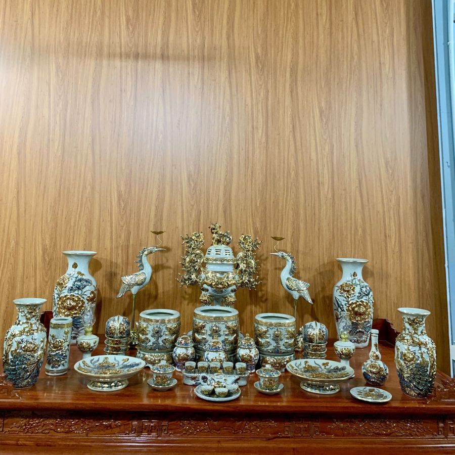Bộ đồ thờ dát vàng Bát Tràng