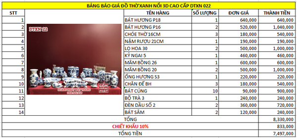 Đồ thờ gốm sứ Bát Tràng