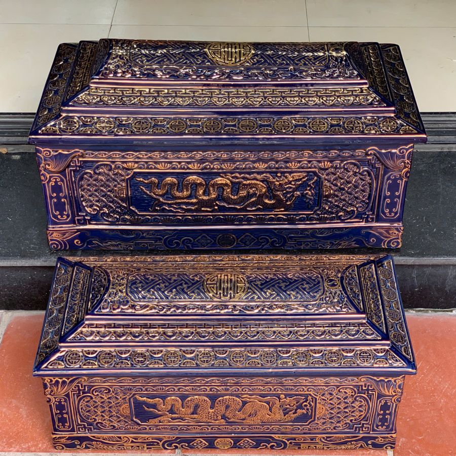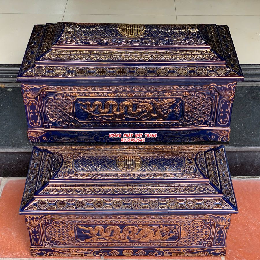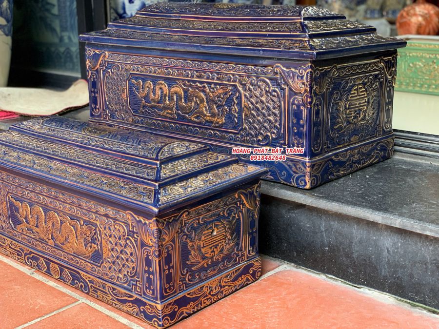 Quách tiểu sứ rồng xanh lam xám vẽ vàng QTSU459